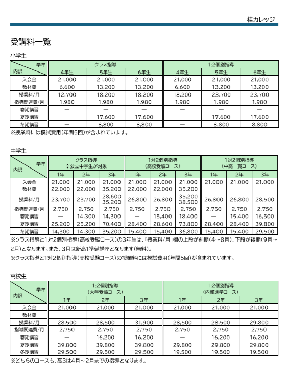 桂カレッジではこれまで独自設定した料金のもとで最大の効果を発揮できるよう努めてまいりました。